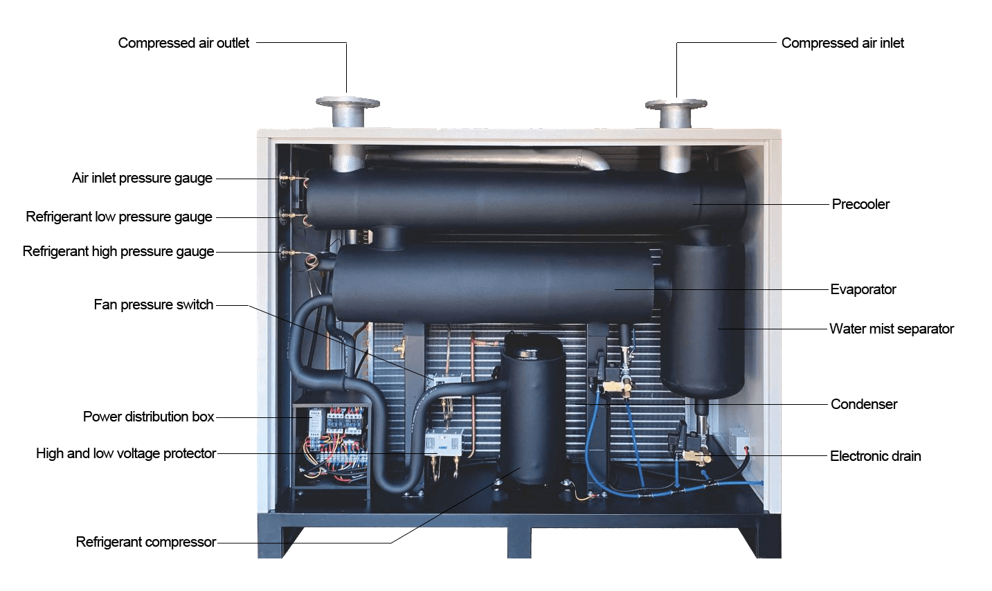 Compressed refrigerated air dryer features: