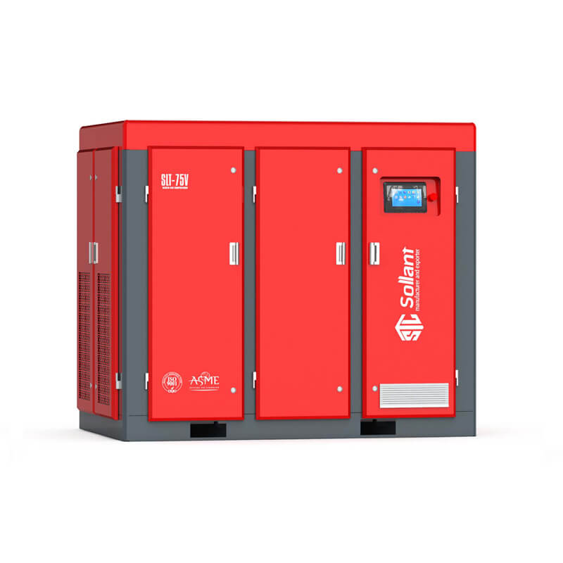 Sollant industrial 100hp AC rotary screw air compressor’s pressure is adjustable, We can set the pressure according to your requirements(7-12bar), It’s motor safety grade reached IP23/55 and. It weighs 1230 kg with 1900mm length * 1250mm width * 1600mm height. If you use it in the factory, we can also add air compressor frequency converter for your air compressor. We can help you save 30-40% of your electricity costs.